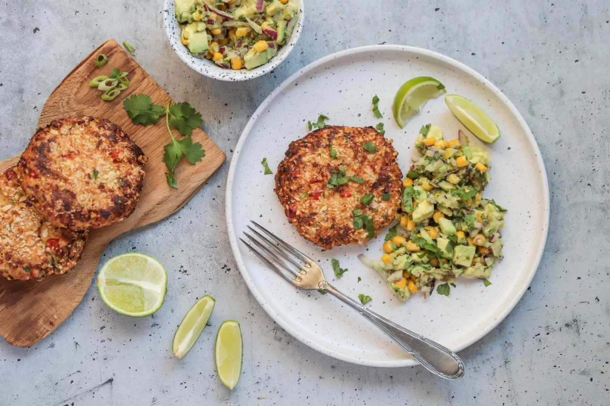 Spicy Salmon Patties with Avocado Corn Salsa